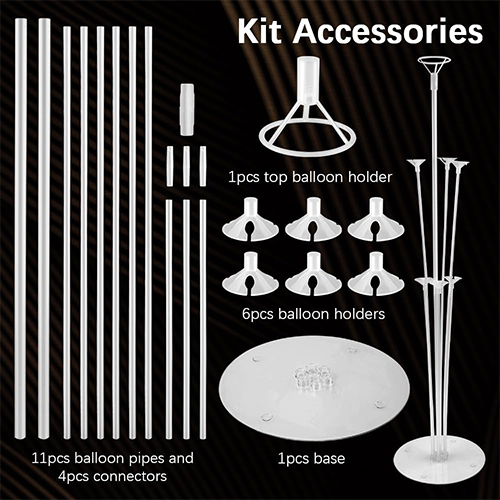 バルーンフロアスタンドは、ベース、いくつかのカップ、異なる長さのプラスチックパイプ、ジョイント、トップガスクラブで構成されています。アセンブリ後、バルーンを固定して、パーティー、結婚式、お祝い、その他のシーンレイアウトに適したデスクトップまたはグランドバルーン装飾モデルを作成できます。バルーンスタンドは、3次元で美しいバルーンスーツを構築するのに便利です。