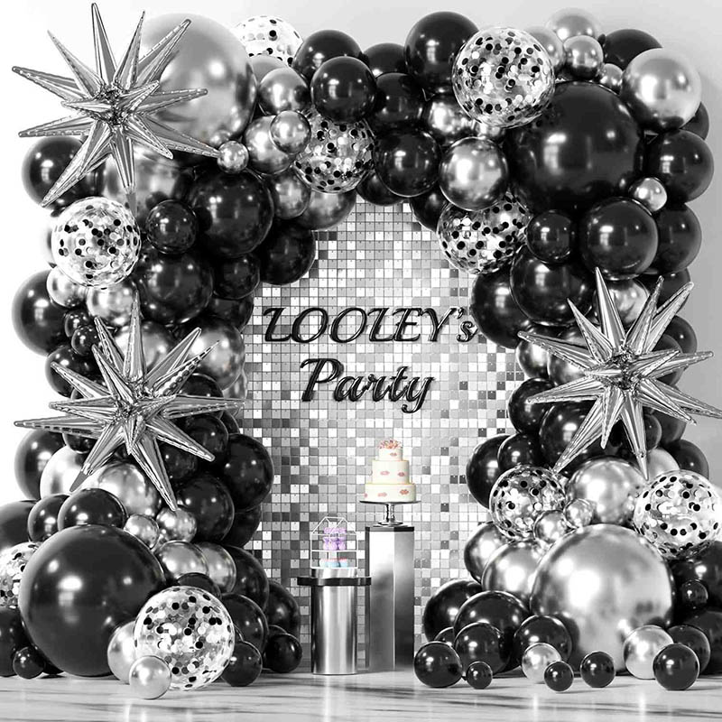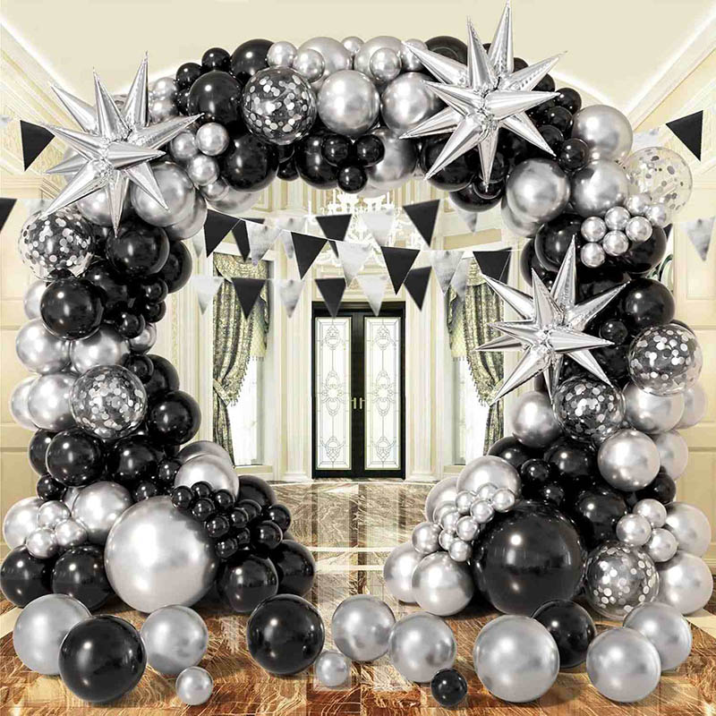 4.プライベートかつ独占的にカスタマイズされた黒と銀のバルーンガーランドキット。