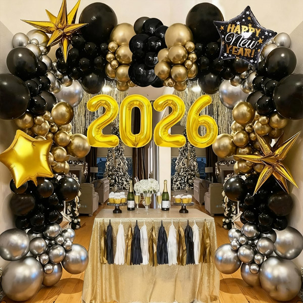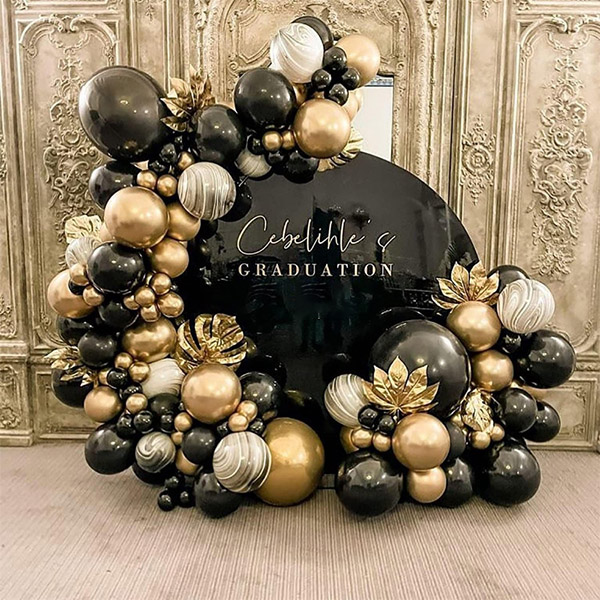 ブラックゴールドバルーンガーランドアーチキットは、新年を歓迎するか、卒業式を祝う、パーティー、誕生日パーティー、さまざまなお祝い活動を開催するかなど、さまざまなお祝いの機会に適したユニークでパーソナライズされたバルーンガーランドキットの装飾です。これらのブラックゴールドバルーンガーランドキットは、イベントにお祝いの色を追加するだけでなく、より豪華で高貴なユニークなブラックゴールドカラーも、あらゆるお祝いの機会を特別で忘れられないものにします。