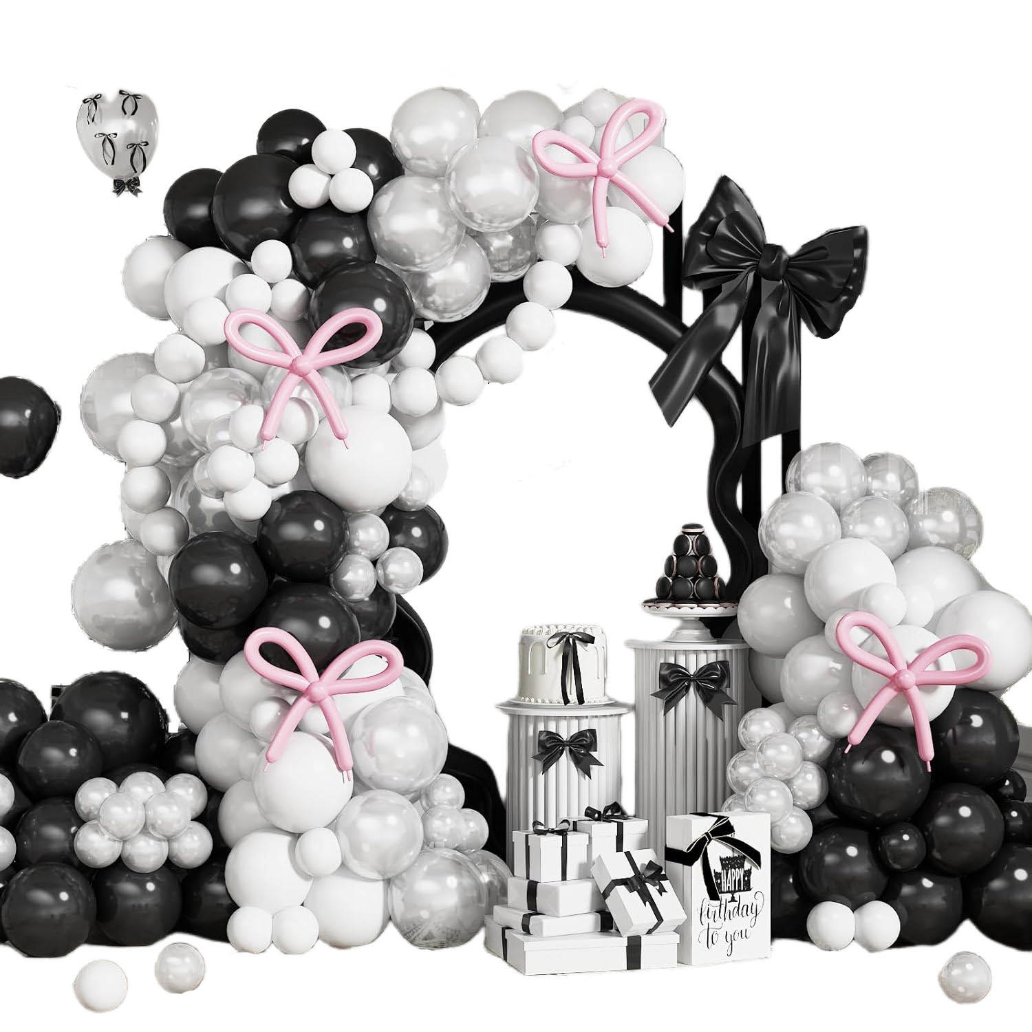 このボウバルーンアーチガーランドは現在、さまざまなバルーンカラーでご利用いただけます。最新の白と黒のバルーンアーチガーランドは、最も人気のある色であり、お客様に人気の選択肢です。白と黒のバルーン リース アーチ セットは、ハッピーバースデーの背景と美しく調和します。リボンのアクセントが誕生日パーティーのバルーンアーチセット全体を引き立て、パーティーに輝きと魅力を加えます。