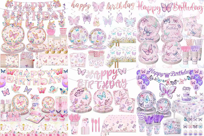 カスタム ソリューションは柔軟です。食器セットの数はパーティーの規模によって変わります。パターンのスタイルも変更できます。さまざまなテーマやかわいい漫画の外観を表示できます。名前や党署名などのテキストを追加できます。それぞれの蝶の食器セットは特別に見え、パーティーの思い出を残します。