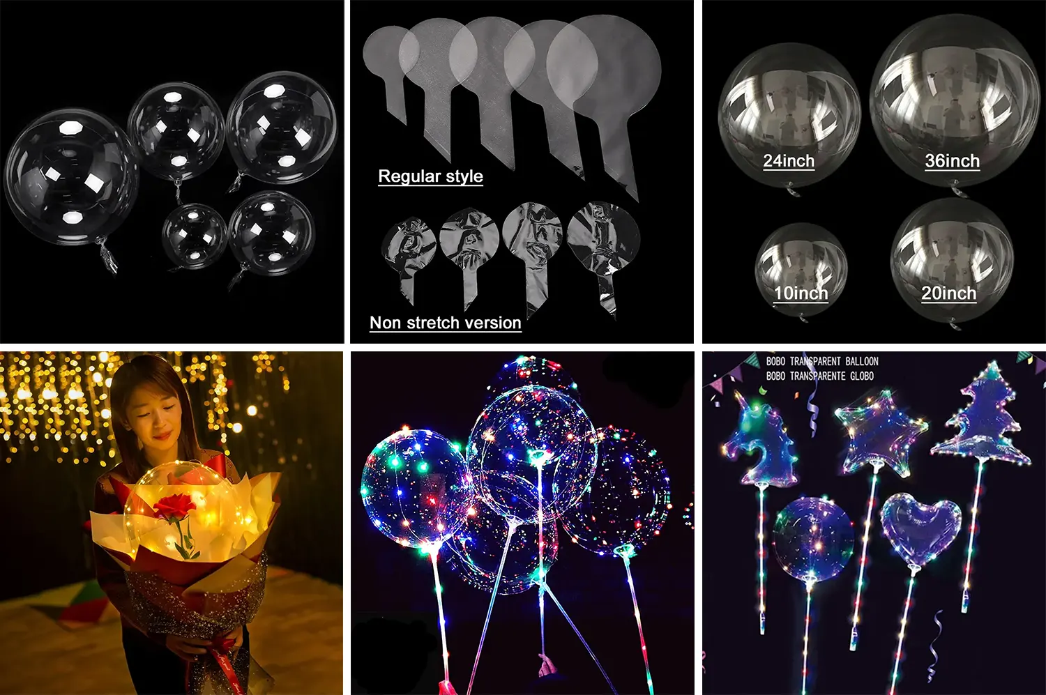 Features:Shocking visual effects, 32 inch clear bobo balloons create core decorations. After inflation, the diameter can reach 58cm or more.