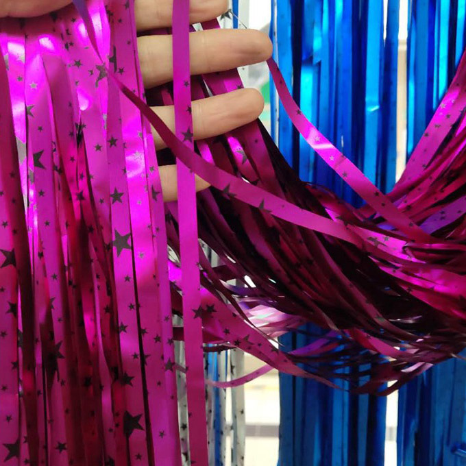 ①Rich and varied colors, including solid color, laser color, macaroon color, etc., and some foil curtains have glitter and gradual change effects, and can also be designed into various shapes, such as five stars, peach hearts, etc., which can add highlights to the scene and create a unique atmosphere.