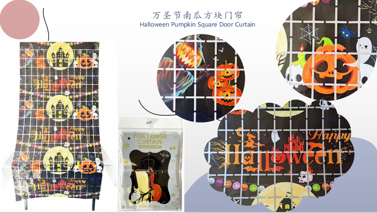 Such as Christmas-themed green and red foil curtain, Halloween-themed black and orange foil curtain, and foil curtain with pumpkins, bats, spiders and other shapes, which can be used for holiday decoration in homes, shopping malls, bars and other places.