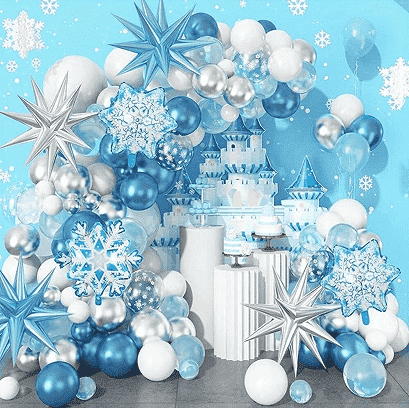 3.冷凍バルーンガーランドキット通常、さまざまなサイズのものが含まれています凍った風船、ユニークなホイルバルーン、一致する装飾リボン、インフレーター、マークのない接着スポット、取り付け用タイやその他のアクセサリにより、レイアウト要件をワンストップで満たします。すべてのコンポーネントは安全で環境に優しい素材で作られており、お子様のアクティビティシーンに完全に適応しています。スーツのバルーンパターンは注意深くマッチングされており、アナと雪の女王の古典的なキャラクターイメージと夢のような氷と雪の要素が組み合わされています。色は青、白、シルバーで、純粋でロマンチックな魔法の雰囲気を作り出します。