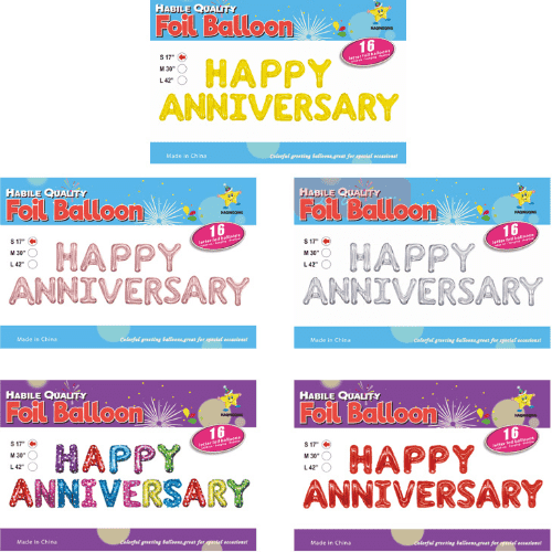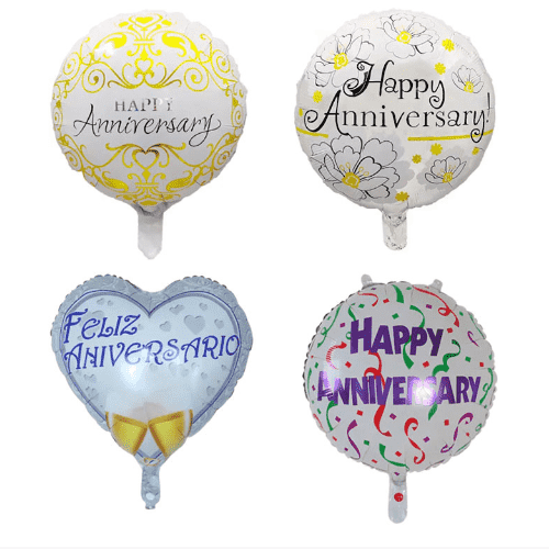 ハッピーアニバーサリー用のホイルバルーンは装飾用に16インチ、メイン背景用に32インチ、大規模なパーティー用に40インチです。