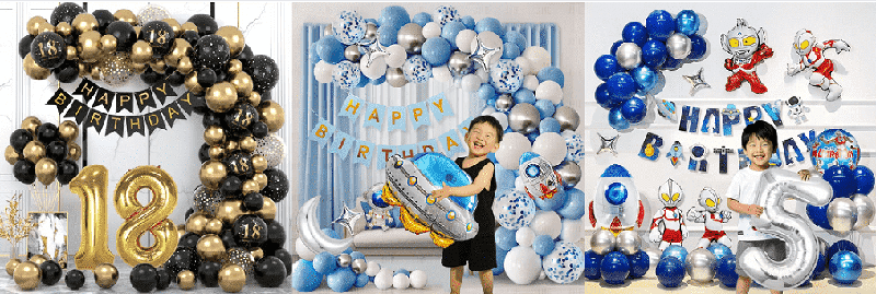 基本的なスタイルは、同じ色または補色のハッピーバースデーのラテックスバルーンです。Happy Birthday レターホイルバルーンまたはナンバーホイルバルーン。クラシックなスタイルには、マカロン パウダー ジェル バルーン ピンクのハッピーバースデー ホイル バルーン、黒のラテックス バルーン ゴールド ナンバー ホイル バルーンがあります。ラテックスバルーンは、バルーンチェーンに通して壁や天井に吊るすことができ、ホイルバルーンを視覚的な中心として、少量のリボンの装飾を加えることで、シンプルで質感のあるパーティーの雰囲気をすぐに作り出すことができます。