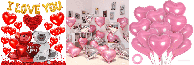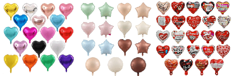 ホイルバルーンの形状のカスタマイズは、ブランドの既存のクラシックなハート型、フックハート型、ハート型のフォトフレームスタイルに加えて、顧客はデザイン図面を提供することもでき、工場はハート型、ラジアンの比率を調整するか、既存のベースに創造的な要素を追加して、ユニークな独自の形状を作成します。