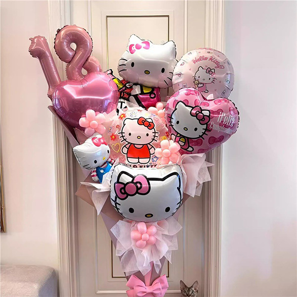 ハローキティはかわいい猫の漫画のキャラクターで、世界中を席巻しています。中国製のハローキティをテーマにしたホイルバルーンは高品質のアルミホイル素材でできており、密閉性が高く、漏れにくいです。このホイルバルーンには、丸いホイルバルーンや立体的な漫画のキャラクターのホイルバルーンなど、30種類以上のスタイルからお選びいただけます。ハローキティをテーマにした 2 つのホイルバルーンの組み合わせは、さまざまな機会のニーズを満たすことができます。たとえば、家族の集まり、誕生日パーティー、企業イベント、その他のお祝いの機会に、これらのホイルバルーンはイベントに楽しい雰囲気を加えることができます。