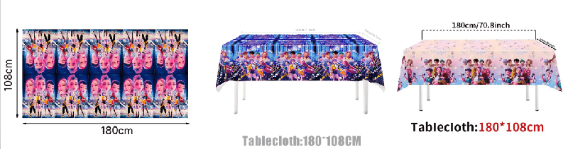 テーブルクロスは食品グレードの素材で作られています。製品は防水性、耐油性、無臭です。ダイニングテーブルに置くと、テーブルの天板を保護し、食器やバナーなどの装飾を引き立て、シーン全体をより統一感のあるものにします。カスタマイズされたK-POPデーモンハンターバルーンパーティーデコレーションテーブルクロス製品パターンとサイズを提供し、パーティーデコレーションの可能性を高めます。