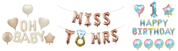 文字ホイルバルーンは、他の形状のホイルバルーン愛、星、漫画、ロゴと一致しており、統一された質感を維持し、素材の混合や乱雑さを避けることができます。同時に、文字モデリングを通じてテーマが強化され、誕生日パーティーや企業活動に適しています。
