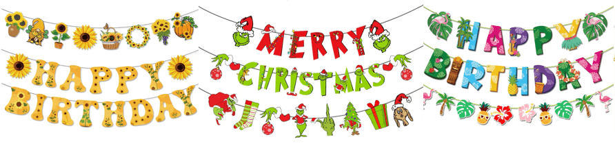 紙のバナーは、紙で作られた一般的な装飾であり、紐やリボンを通して、一連のバナーのテキストやパターンが印刷され、祭り、活動、その他の機会の雰囲気を作り出すために使用されます。