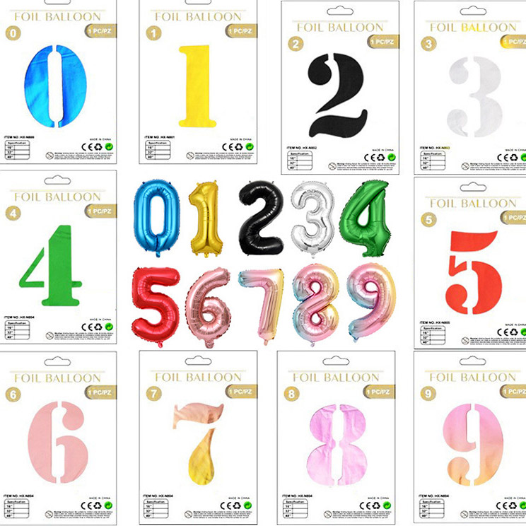 ナンバーフォイルバルーン:16インチ、32インチ、40インチのサイズで利用可能です。