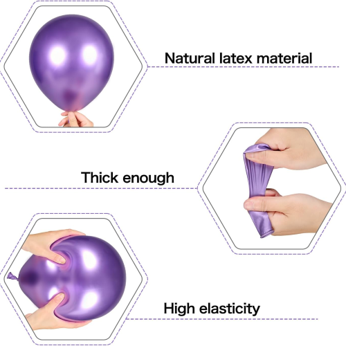 当社の紫と黒のバルーン ガーランド キットの量と重量は、他のブランドよりも多くなっています。当社のバルーン ガーランド アーチ キットには、少なくとも 100 個のバルーンが含まれています。当社が提供するすべてのバルーン サイズは、業界標準のグラム重量を使用しています。たとえば、12 インチの風船のグラム重量は 2.8g です。特別なご要望がある場合は、バルーングラムの重量を調整することもできます。下の写真のように、バルーンセットが1つあるだけで、おしゃれで雰囲気のあるパーティーシーンが簡単に演出できます。