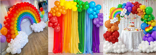 NuNゴージャス虹をテーマにしたパーティーデコレーションは、7色の鮮やかなレインボーバルーンが特徴で、パーティーに彩りを加えます。このレインボー バルーン アーチ キットを使用して、虹をテーマにしたパーティーの鮮やかなレインボー バルーン アーチ、背景、目玉、入り口を作成します。