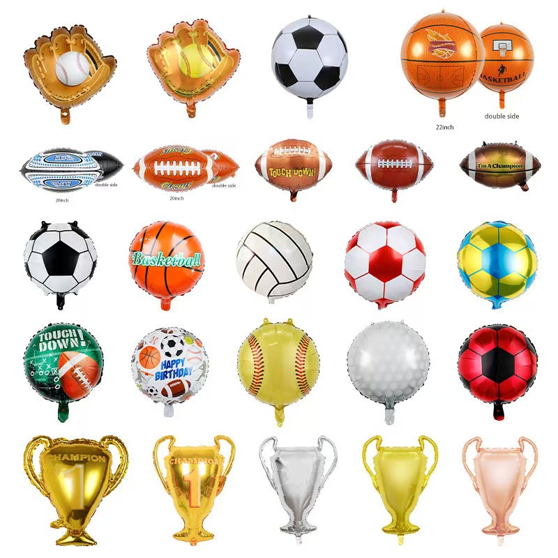 スポーツテーマのホイルバルーンは高品質の金属アルミニウムホイルで作られています。表面はスポーツ用品のような明るく光沢のある質感です。膨張後、強い立体感があり、空気保持時間が長く、損傷しにくいです。
