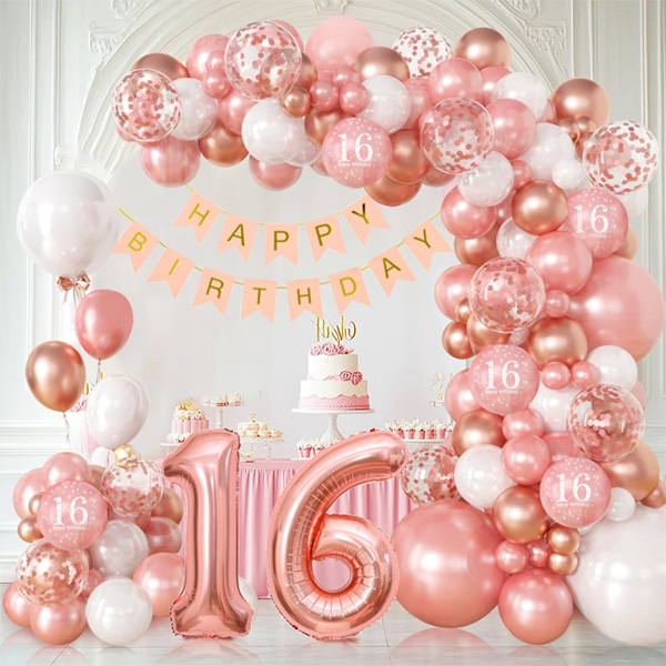 スイート 16 バルーン アーチ このパッケージには、ラテックス バルーン、ホイル バルーン、誕生日バナー、接着スポット、リボンなどが含まれています。特別なニーズがある場合は、ご要望に応じてパッケージ内のバルーン サイズ、数量、色などをカスタマイズすることもできます。s.