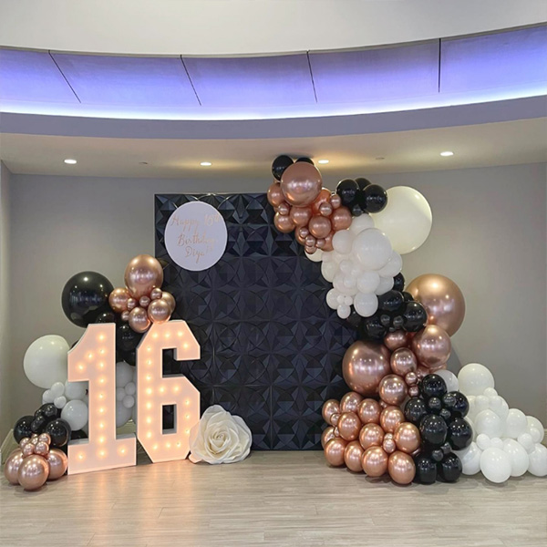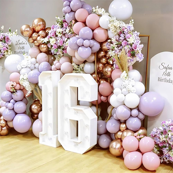 16 歳の誕生日はスイート 16 歳と呼ばれ、子供時代から青年期への更なる移行を象徴する、成長の記念すべき地点です。この特別な日を祝うために家族がパーティーを開催できるよう、当社の工場は消費者の購入ニーズを満たすスイート16バルーンアーチを特別に発売しました。このガーランド アーチ セットは、ラテックス バルーン、ホイル バルーン、バースデー バナー、バルーン ボックス、接着ポイント、その他のアクセサリーで構成されています。当社のラテックスバルーンは天然ゴムで作られ、ホイルバルーンは高品質のアルミホイル素材で作られており、16歳の誕生日の装飾の各セットは慎重に検査され、最高の品質基準を確保しています。このバルーンは耐久性があり、破裂しにくく、完璧で、空気とヘリウムの両方の充填に適しています。このバルーンアーチの他に、16個のLEDライトを備えたバルーンガーランドアーチも製作しました。 16個のLEDライトがあなたの誕生日をより人目を引くようにし、LEDなどの3つのモードから選択できます。 16歳の誕生日プリントのラテックスバルーンセットもあります。このセットは通常12インチのラテックスバルーンに使用されます。パターンは明確で、損傷しにくいです。長期間使用できます。私たちは、さまざまな大規模な機会のニーズを満たすためにこれらのパッケージを作成し、パーティーに楽しい雰囲気を加えました。