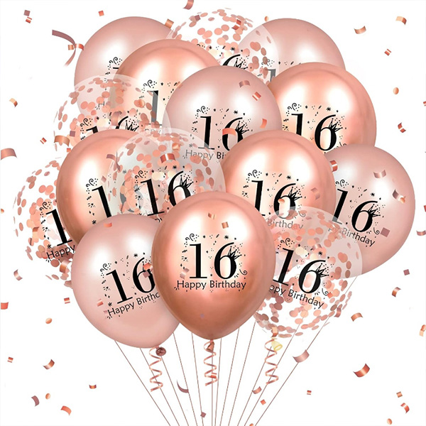 16歳の誕生日プリントラテックスバルーン:当社の工場で製造されたこの16歳の誕生日プリントラテックスバルーンは、16歳の誕生日パーティーや16周年を祝う機会に非常に適しています。さまざまな色からお選びいただけます。ローズゴールド、ブラックゴールド、パープルゴールド、ブルー、ブラックをご紹介します。ご要望に応じて、16 個の印刷バルーンをカスタマイズすることもできます。これらは写真を撮るための優れた背景小道具であり、これらのシーンに喜びとアクティブな雰囲気を加えることができます。この印刷された風船は、空気、ヘリウム、さらには水を充填することができ、簡単に損傷したり変色したりしません。あらゆる種類の16歳の誕生日パーティーや家族の集まりに最適な装飾です。このラテックスバルーンを他のパーティーの装飾や装飾と組み合わせて使用すると、さらに楽しくなります。
