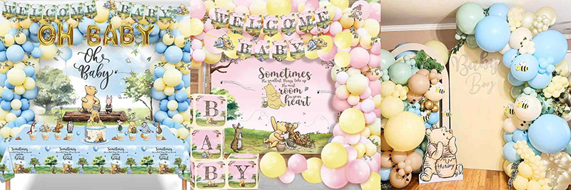 このスタイルは、古典的なくまのプーさん IP に焦点を当てています。たくさんのかわいい友達の画像をミックスしています。これらの友達にはティガーとピグレットが含まれます。爽やかなマカロンカラーのバルーンと合わせて。色は柔らかいブルー、ピンク、イエロー、グリーンなどです。男の子の赤ちゃんのパーティーに最適です。女の子の赤ちゃんのパーティーにも最適です。ぴったりのカラースタイルが見つかります。例えば、ブルー系は男の子の晴れやかな活力を表します。女の子の甘さと可愛らしさが詰まったピンクシリーズ。